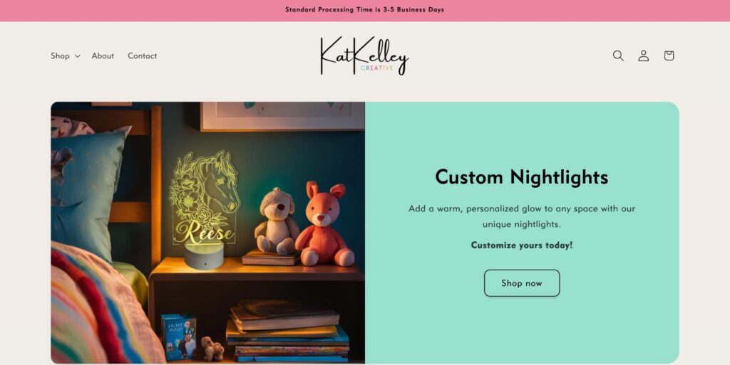 Kat Kelley Creative now has a full-fledged online home that captures her energy and enables her to run her business with greater efficiency. The branding feels personal and professional, the website is easy to navigate, and the customization options simplify the buyer journey. The result is a digital brand presence that’s as fun, functional, and creative as Kat herself—ready to grow with her audience.