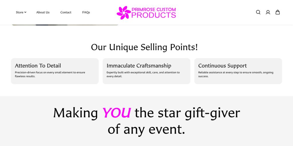 Primrose Custom Products specializes in handcrafted, personalized items that blend charm with thoughtful design. With a growing customer base and a product line centered around meaningful customization, the brand needed an online presence that reflected its refined aesthetic—while also making it easy for customers to understand what they were buying.